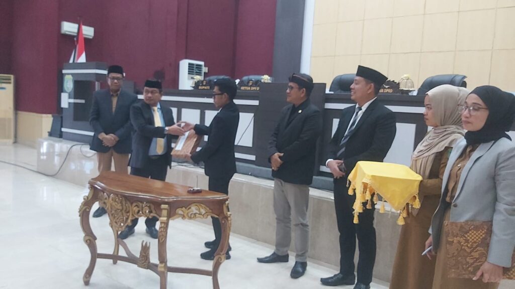 Penyerahan Laporan Keterangan Pertanggungjawaban (LKPJ) Bupati Tahun Anggaran 2025 oleh pihak eksekutif kepada pimpinan DPRD Kabupaten Pasangkayu dalam rapat paripurna yang digelar di Ruang Sidang DPRD, Senin (30/3/2026).