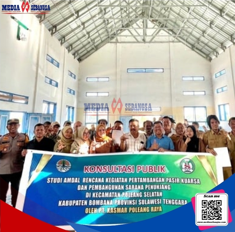 Bombana, medisebangsa.com | PT Kasmar Poleang Raya (KPR Silika), perusahaan yang bergerak di sektor pertambangan pasir, menggelar Konsultasi Publik Analisis Mengenai Dampak Lingkungan (AMDAL) di Aula Serbaguna Kecamatan Poleang Selatan, Kabupaten Bombana, Sulawesi Tenggara, Senin (21/10).