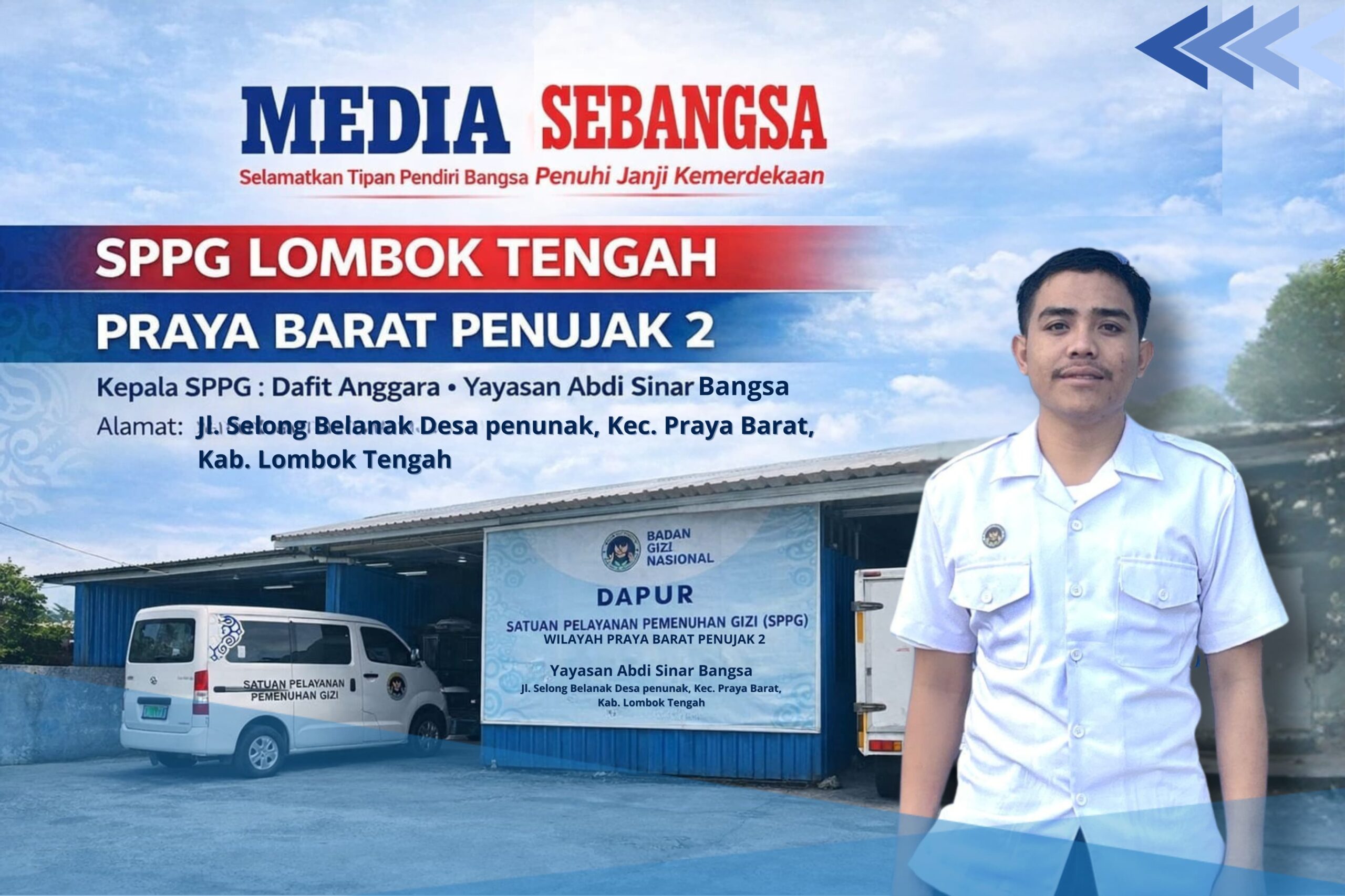 LOMBOK TENGAH, Mediasebangsa.com — Komitmen dalam meningkatkan kualitas gizi masyarakat terus diperkuat melalui pelaksanaan Program Makan Bergizi Gratis (MBG). SPPG Lombok Tengah Praya Barat Penujak 2 menegaskan kesiapannya mendukung program strategis nasional sebagai bagian dari upaya pemenuhan gizi anak-anak dan kelompok rentan di Kabupaten Lombok Tengah, Provinsi Nusa Tenggara Barat.