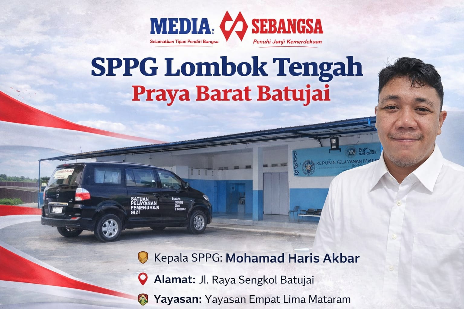 SPPG Lombok Tengah Praya Barat Batujai berada di bawah naungan Yayasan Empat Lima Mataram dan beralamat di Jalan Raya Sengkol Batujai, Kecamatan Praya Barat. Kehadiran SPPG ini menjadi salah satu unit layanan pemenuhan gizi yang berperan aktif dalam mendukung kebijakan nasional di bidang kesehatan serta peningkatan kualitas sumber daya manusia.