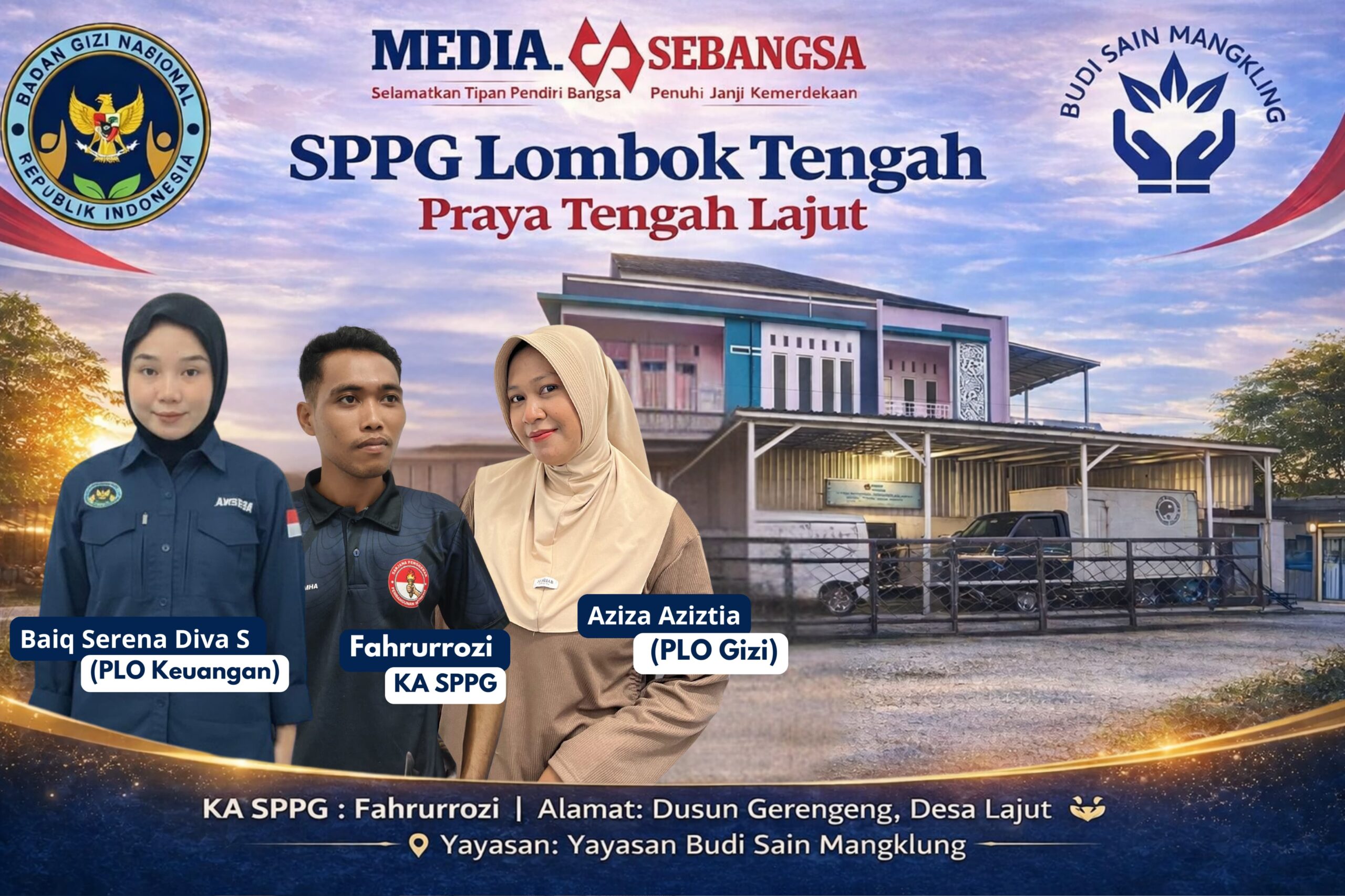 PRAYA TENGAH, Mediasebangsa.com – Satuan Pelayanan Pemenuhan Gizi (SPPG) Lombok Tengah Praya Tengah Lajut terus memperkuat pelaksanaan Program Makan Bergizi Gratis (MBG) bagi masyarakat. Hingga saat ini, SPPG yang berada di bawah naungan Yayasan Budi Sain Mangklung tersebut melayani 3.045 penerima manfaat di wilayah Dusun Gerengeng, Desa Lajut, Kecamatan Praya Tengah, Kabupaten Lombok Tengah.