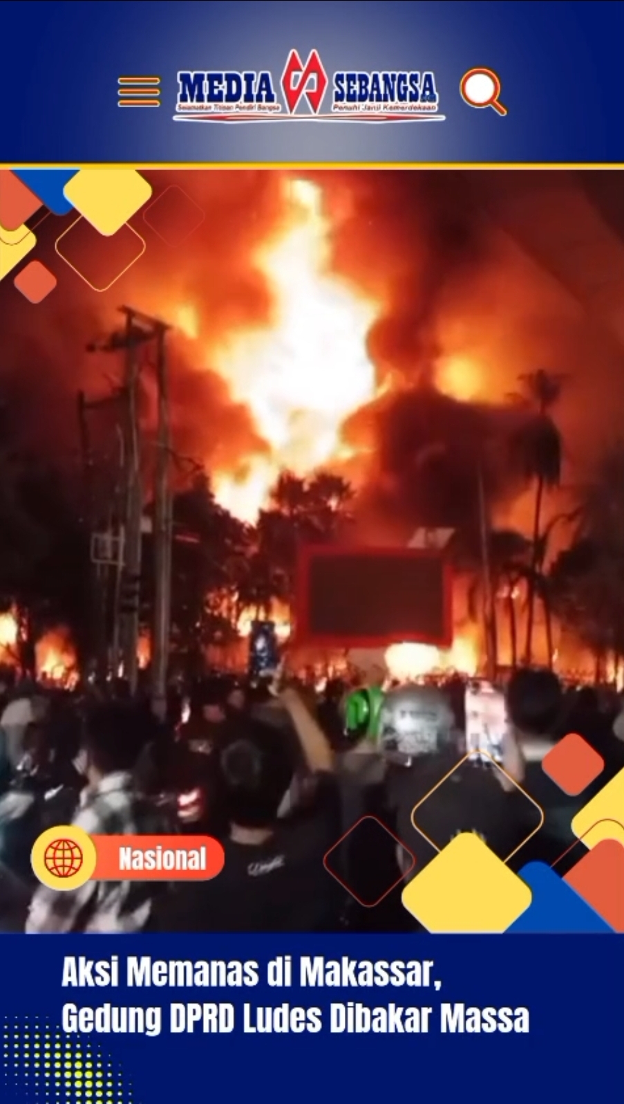 Makassar, Mediasebangsa | Gedung DPRD Kota Makassar di Jalan A.P. Pettarani terbakar setelah diserbu ratusan demonstran pada jumat (29/8/25) malam. Aksi tersebut melibatkan mahasiswa dan pengemudi ojek online yang sebelumnya menggelar unjuk rasa.