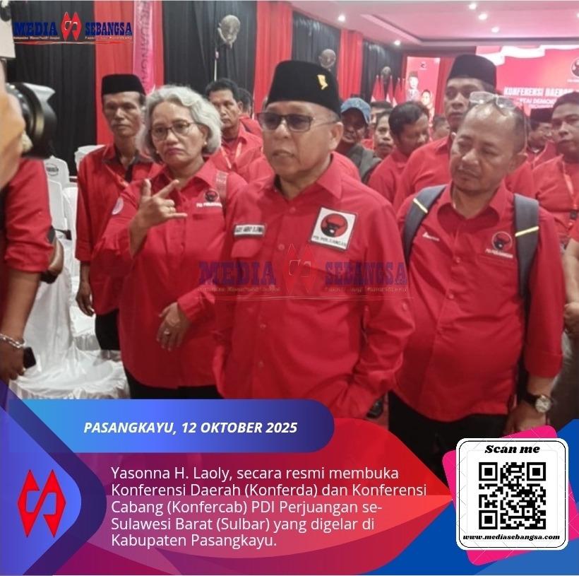 Pasangkayu, medisebangsa.com | Ketua DPP PDI Perjuangan Bidang Reformasi Hukum dan Hak Asasi Manusia, Yasonna H. Laoly, secara resmi membuka Konferensi Daerah (Konferda) dan Konferensi Cabang (Konfercab) PDI Perjuangan se-Sulawesi Barat (Sulbar) yang digelar di Kabupaten Pasangkayu, Rabu (12/11/2025).